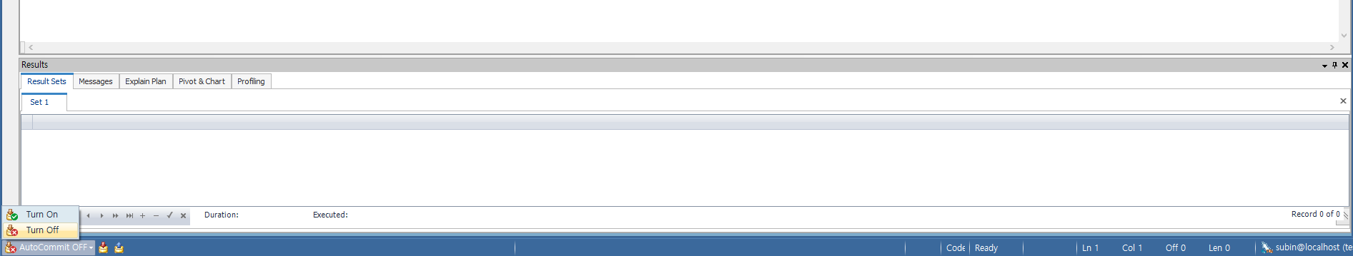 Toad 창 좌측 하단 확인 → AutoCommit Turn OFF