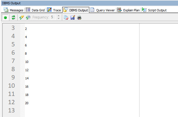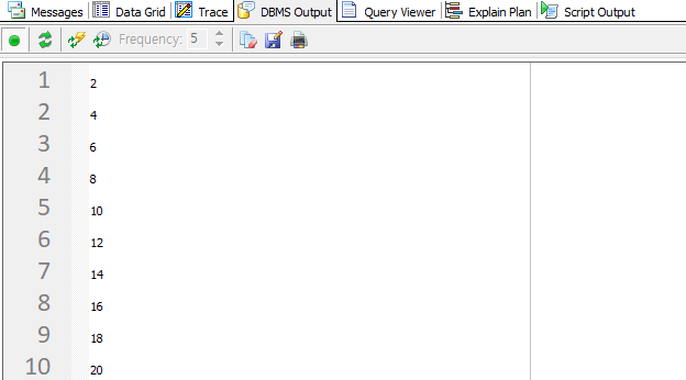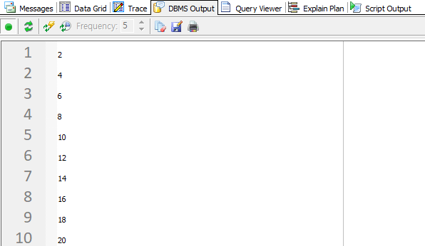dbms_output.put_line(result); --2, 4,...16,18, 20