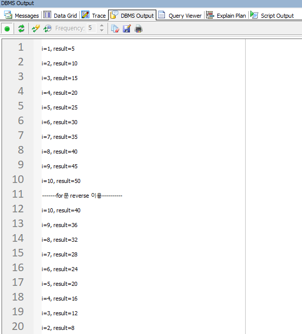 dbms_output.put_line('-------for문 reverse 이용----------');