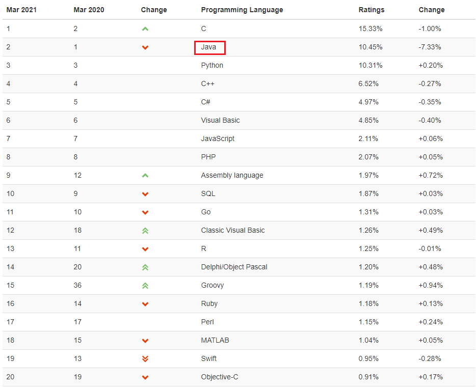 위 사진은 인기있는 프로그래밍 언어 순위인데, 1,2위를 다툴만큼 Java는 전세계적으로 인기를 받고있다.