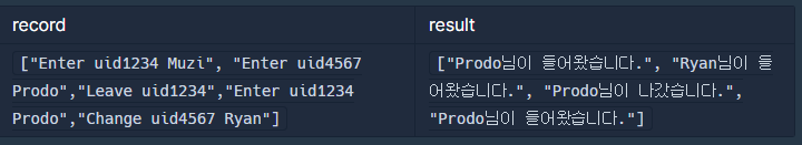 String[] record는 [Command(Enter/Leave/Change) Userid Nickname] 이런 순으로 규칙을 가지고있는것을 활용했다.